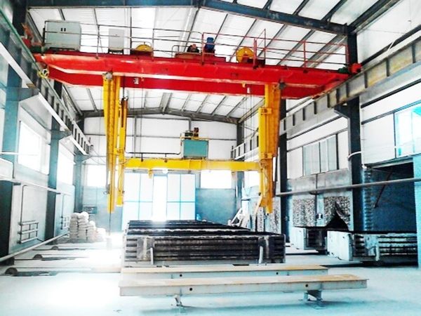 加气混凝土起重机是专门用来吊运混凝土模具和坯体的专用起重机,由箱形桥架、大车运行机构、起升机构及电气设备四部分组成,配合专用吊具,完成模具的翻转、开模和脱模等工作。