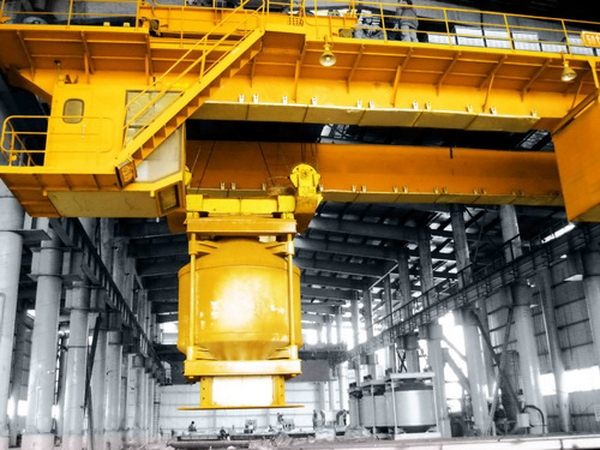 精准定位起重机(又称为料罐起重机、冶金上料起重机),该起重机主要应用于镍矿、电石冶炼行业,吊运850℃红土镍矿焙砂料或电石料罐,中控室控制,能实现无人操纵、智能化上料,可根据料仓盈亏自动分配料砂,是整个冶炼过程的重要组成部分之一。